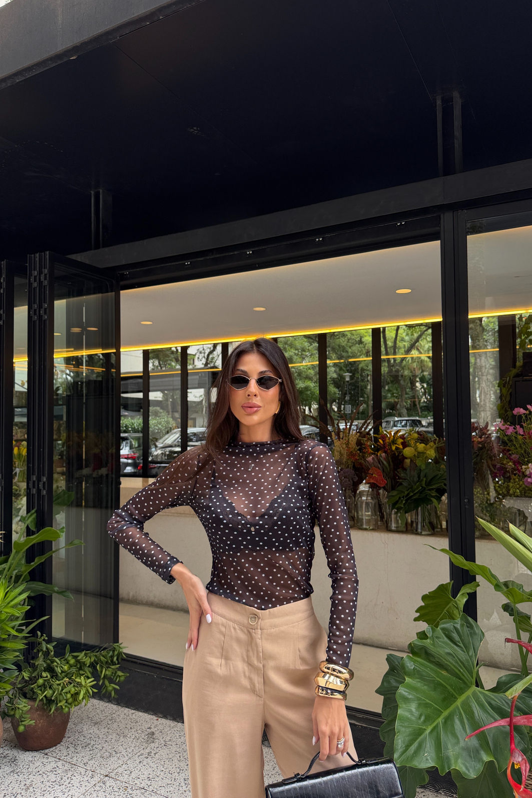 AdicionarDelicada e atemporal, essa blusa em tule com estampa poá traz leve transparência na medida certa para criar produções femininas e versáteis. Confeccionada em tule com elasticidade, possui modelagem ajustada ao corpo que valoriza a silhueta com conforto, sem marcar. A manga longa e a gola alta reforçam a proposta elegante da peça, com caimento leve que acompanha os movimentos. Funciona como uma base sofisticada para composições que vão do casual com jeans até produções mais elaboradas com sobreposição, elevando o visual com facilidade.
