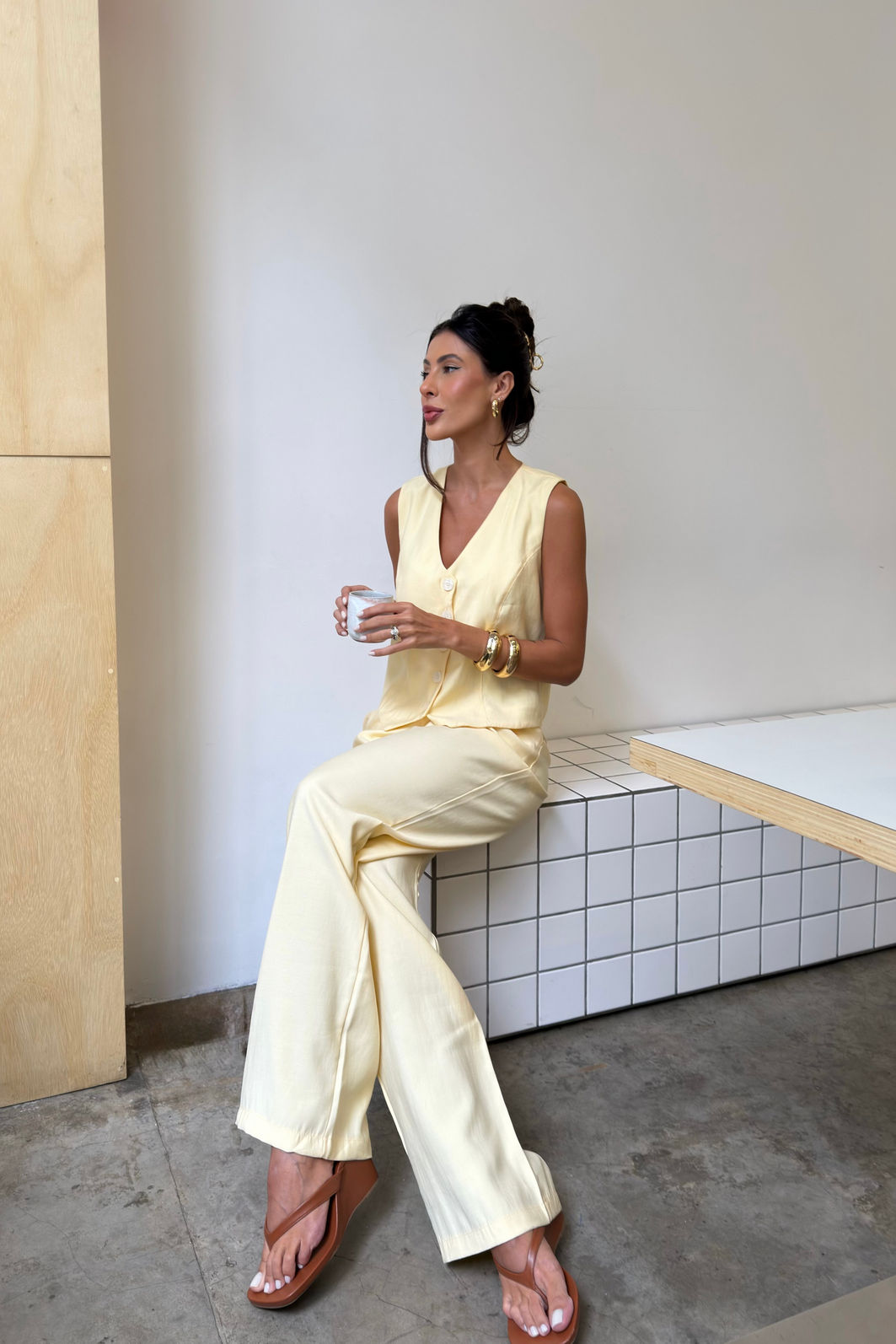 A calça Alissa é puro charme com um toque de sofisticação e descomplicada! Com modelagem levemente wide, fluida e com pregas frontais que alongam a silhueta, ela une conforto e elegância em uma peça versátil. O tom claro é perfeito para composições neutras ou coloridas, casuais ou mais sofisticados, enquanto o caimento impecável garante aquele visual elegante sem esforço, do dia de trabalho ao passeio no fim de semana.
