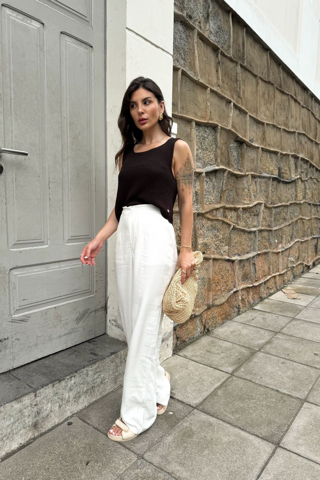 A calça Alissa Branca é puro charme com um toque de sofisticação e descomplicada! Com modelagem levemente wide, fluida e com pregas frontais que alongam a silhueta, ela une conforto e elegância em uma peça versátil. O tom claro é perfeito para composições neutras ou coloridas, casuais ou mais sofisticados, enquanto o caimento impecável garante aquele visual elegante sem esforço, do dia de trabalho ao passeio no fim de semana.