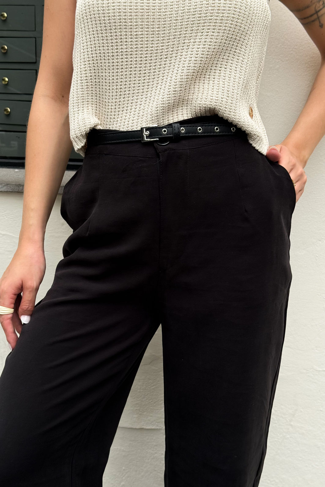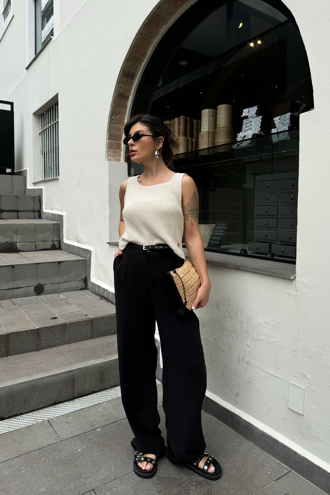 A calça Alissa é puro charme com um toque de sofisticação e descomplicada! Com modelagem levemente wide, fluida e com pregas frontais que alongam a silhueta, ela une conforto e elegância em uma peça versátil. O tom claro é perfeito para composições neutras ou coloridas, casuais ou mais sofisticados, enquanto o caimento impecável garante aquele visual elegante sem esforço, do dia de trabalho ao passeio no fim de semana.