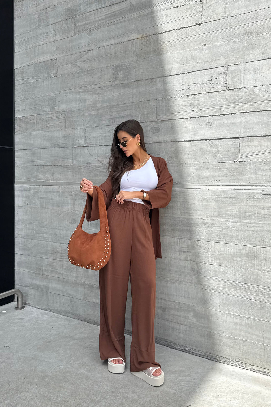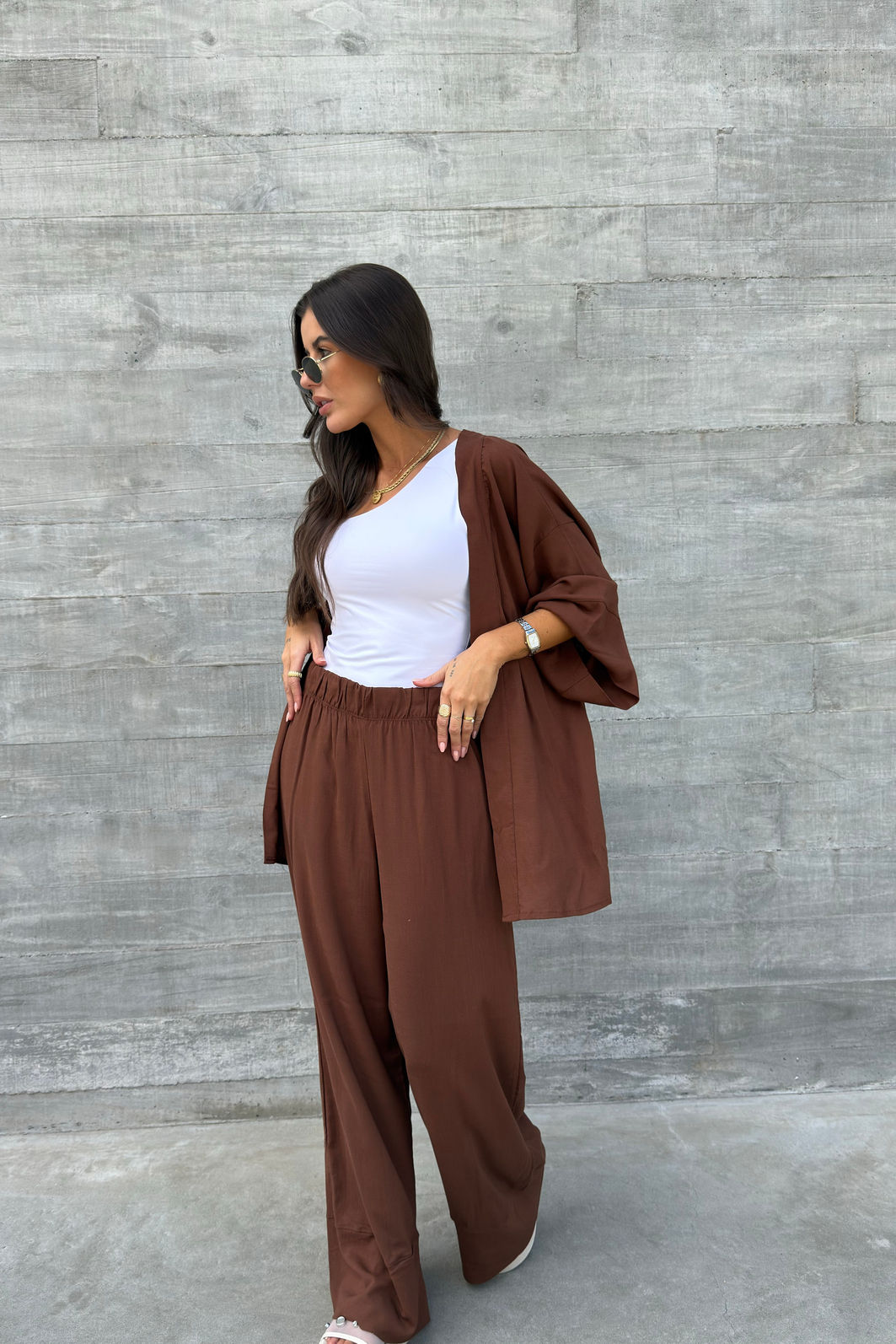 A calça pantalona é aquela peça essencial que une elegância e conforto em um visual leve e sofisticado. Confeccionada em viscose, possui toque macio e caimento fluído, que acompanha o movimento do corpo com naturalidade. O modelo apresenta cós com elástico, garantindo conforto ao vestir, além de uma modelagem ampla que alonga a silhueta. A barra com recorte adiciona um detalhe sutil ao design, trazendo ainda mais charme à peça.