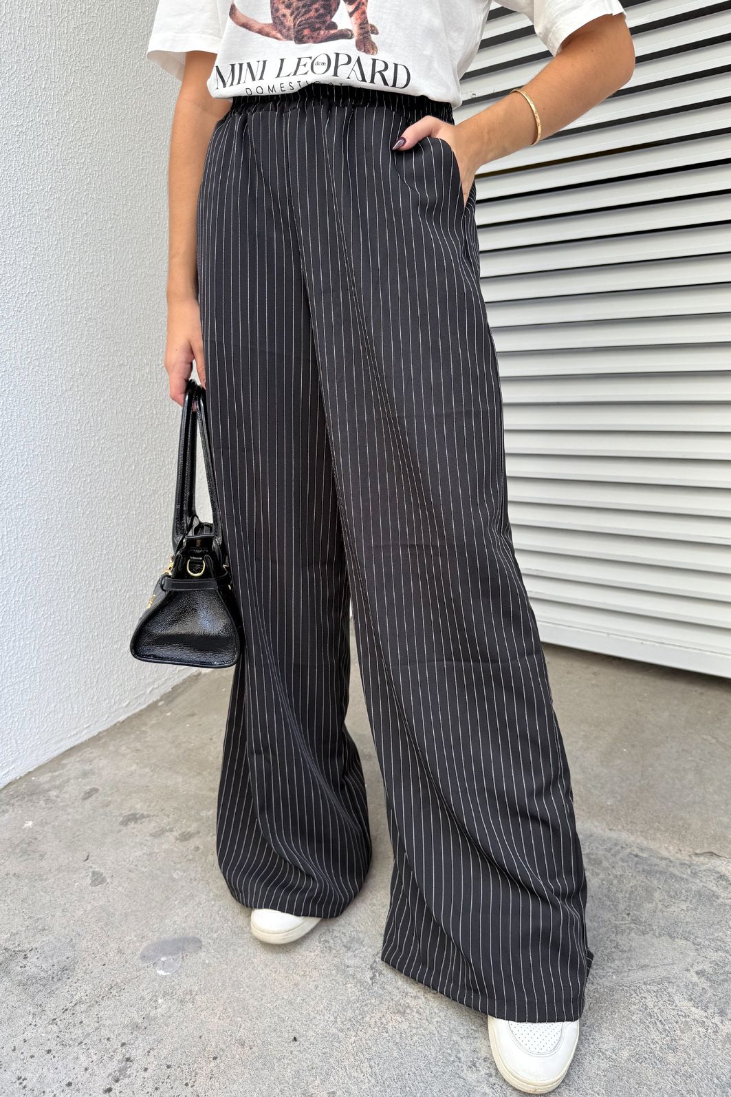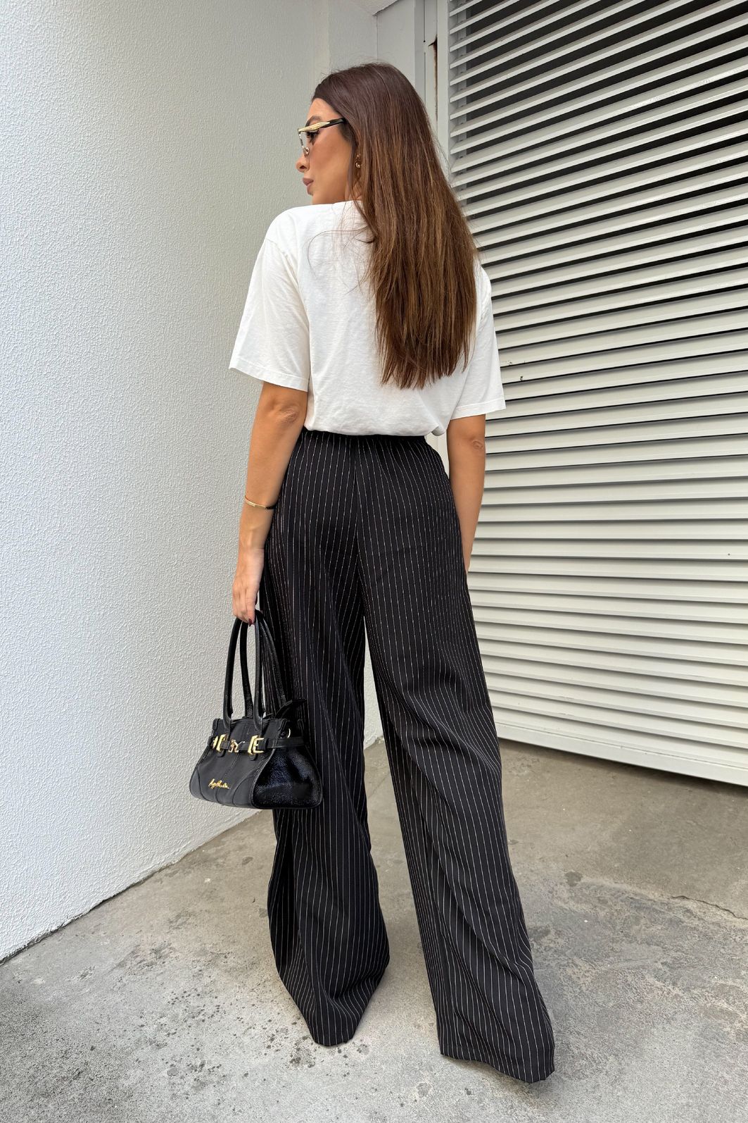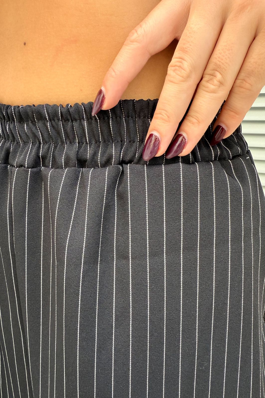 se você procura calça pantalona preta risca de giz, essa é a peça certa. a calça pantalona lia risca de giz preta da dolce-me é confeccionada em crepe estruturado, com estampa clássica risca de giz, o que garante visual alinhado, sofisticado e atemporal. a modelagem pantalona, combinada com o caimento firme do tecido, ajuda a alongar a silhueta e deixa a peça ainda mais elegante.