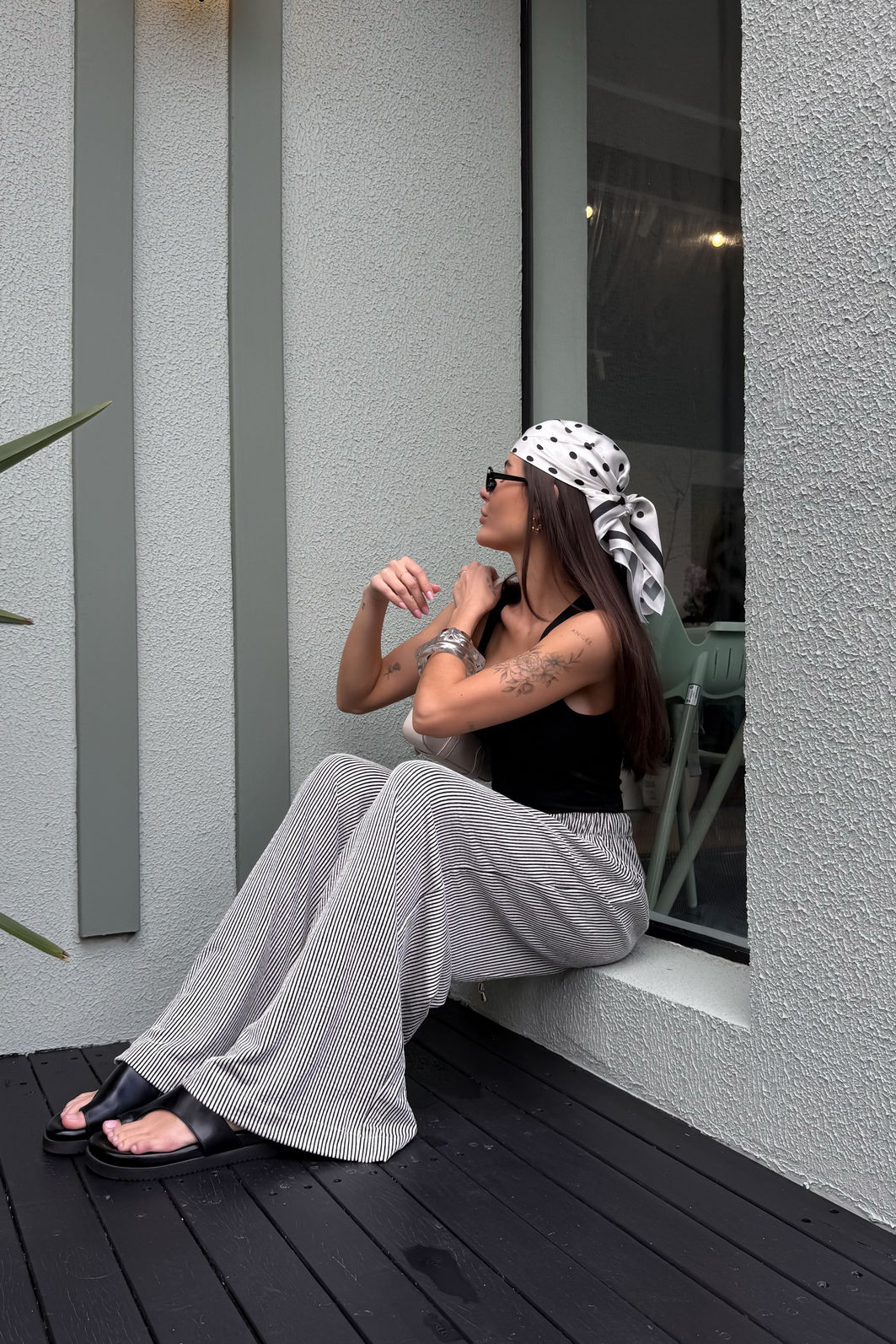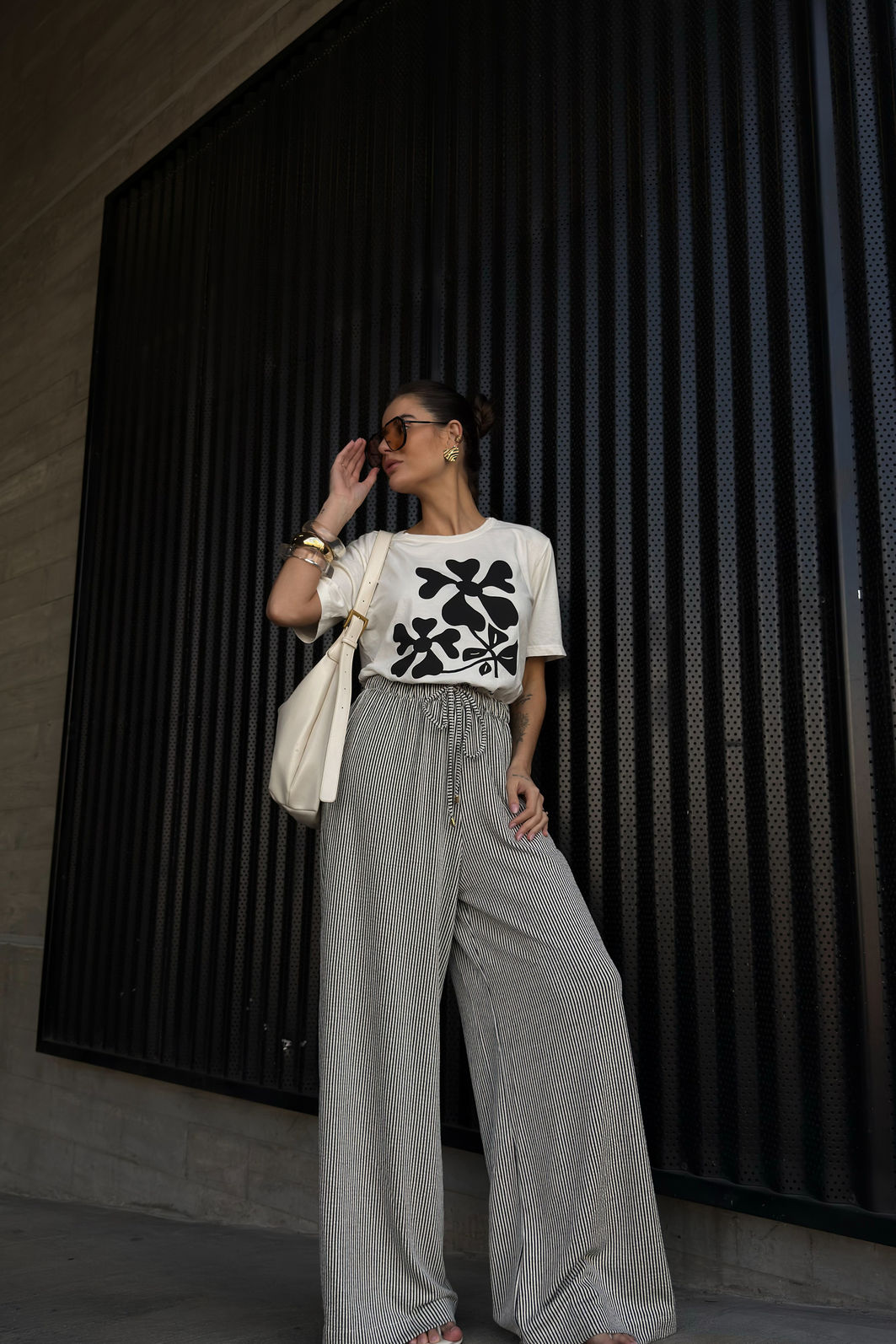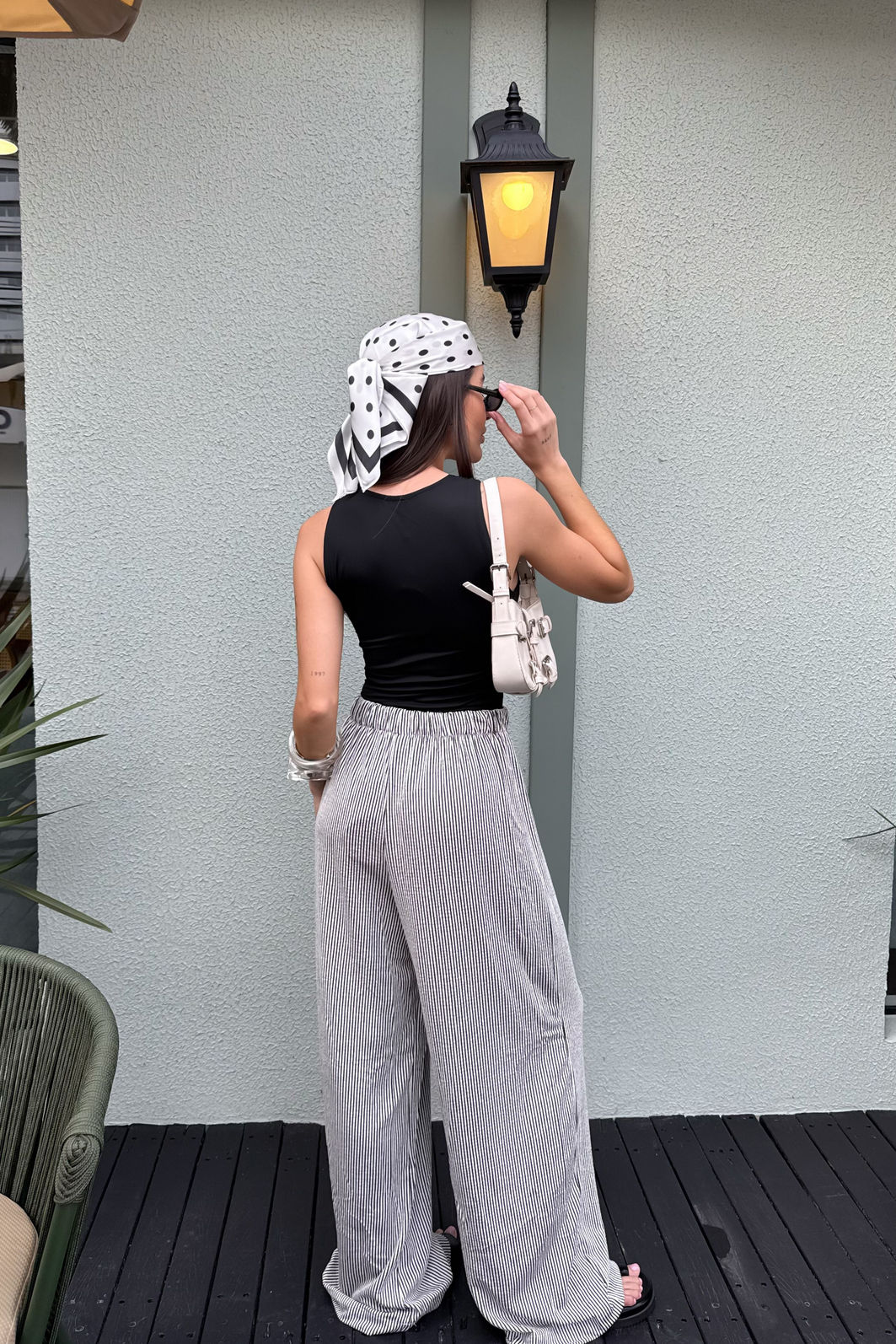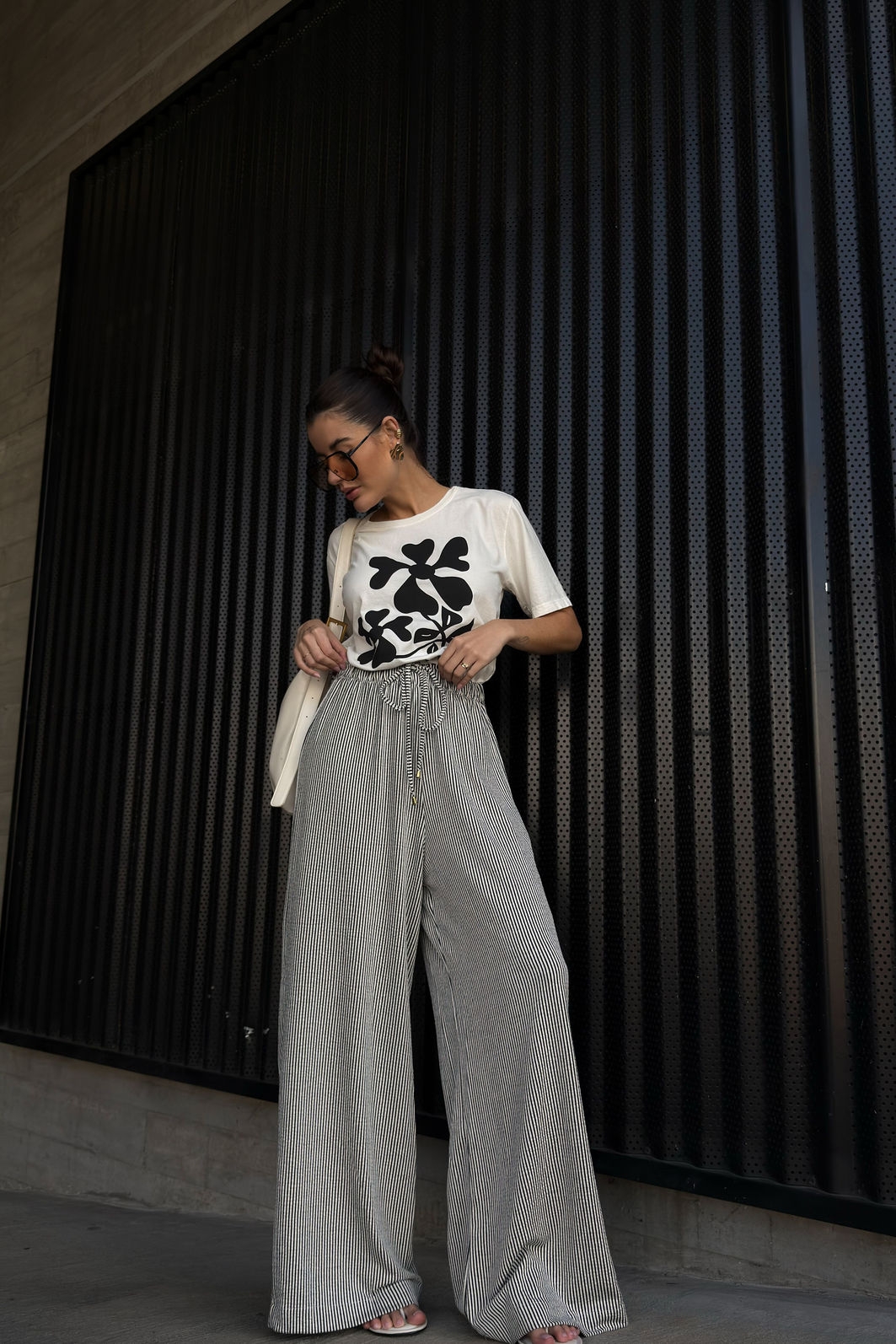 AdicionarA calça Louise tem aquela presença tranquila que resolve o look sem esforço. Confeccionada em malha texturizada com listras finas preto e branco, o tecido mescla viscose, linho e elastano em uma combinação que entrega uma peça fluida, com toque suave e movimento. A modelagem reta de perna larga alonga a silhueta. O cós com elástico embutido e cordão com ponteira garantem ajuste confortável e um acabamento que faz diferença. Os bolsos funcionais laterais completam a proposta comfy da calça.