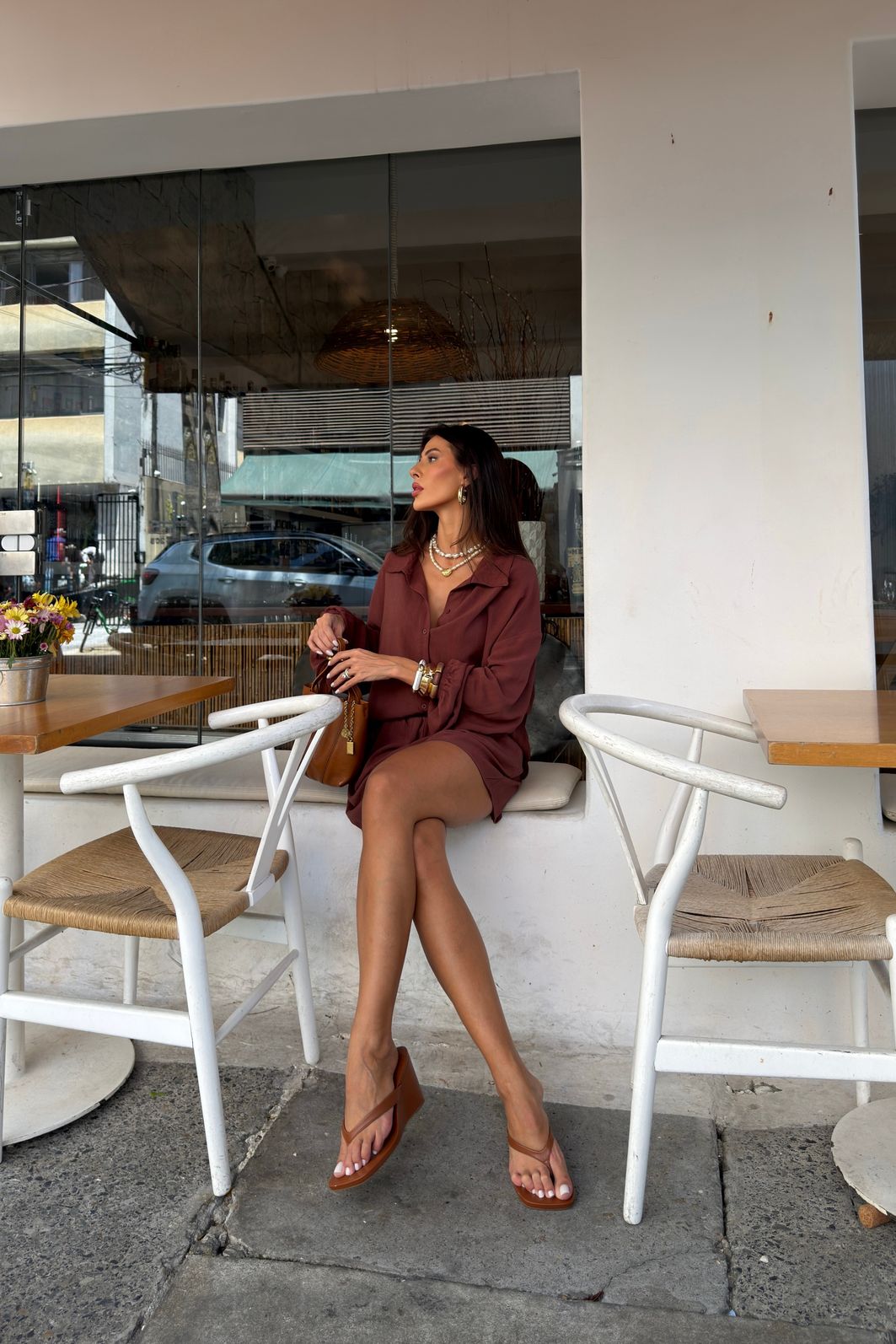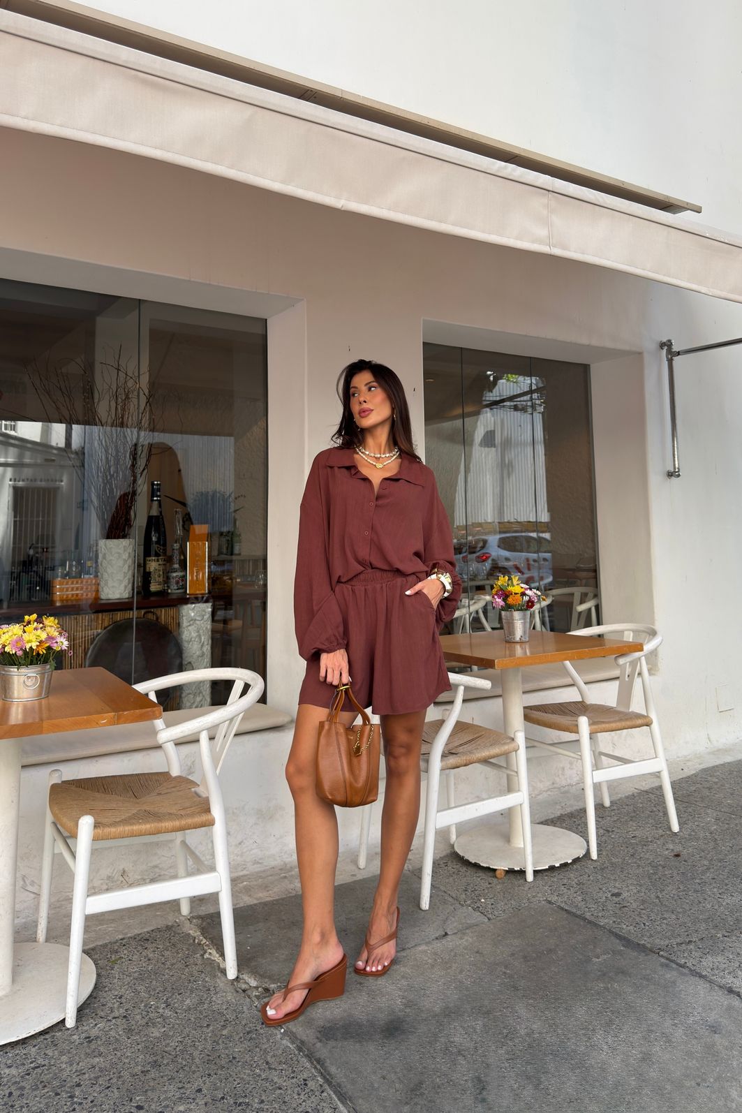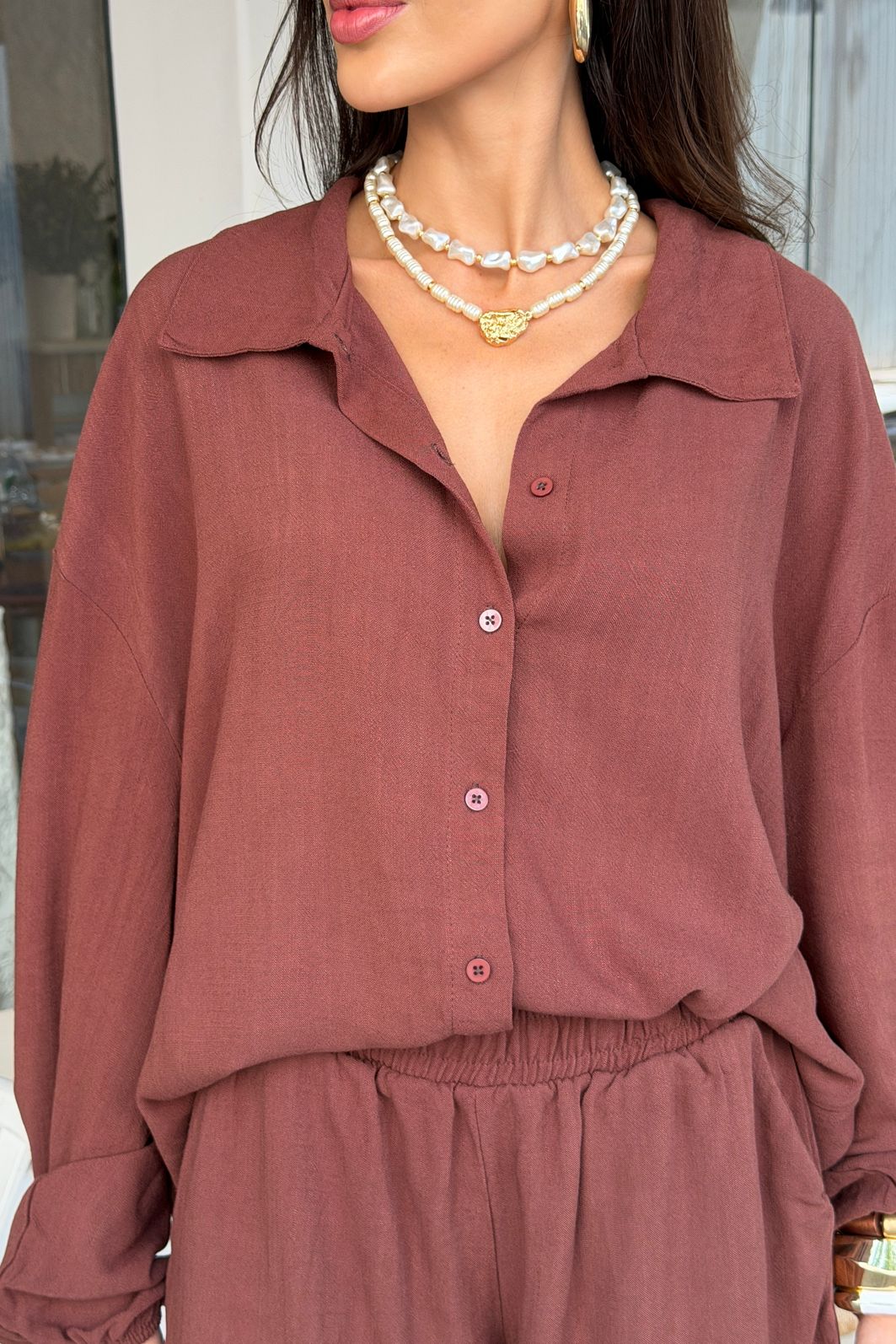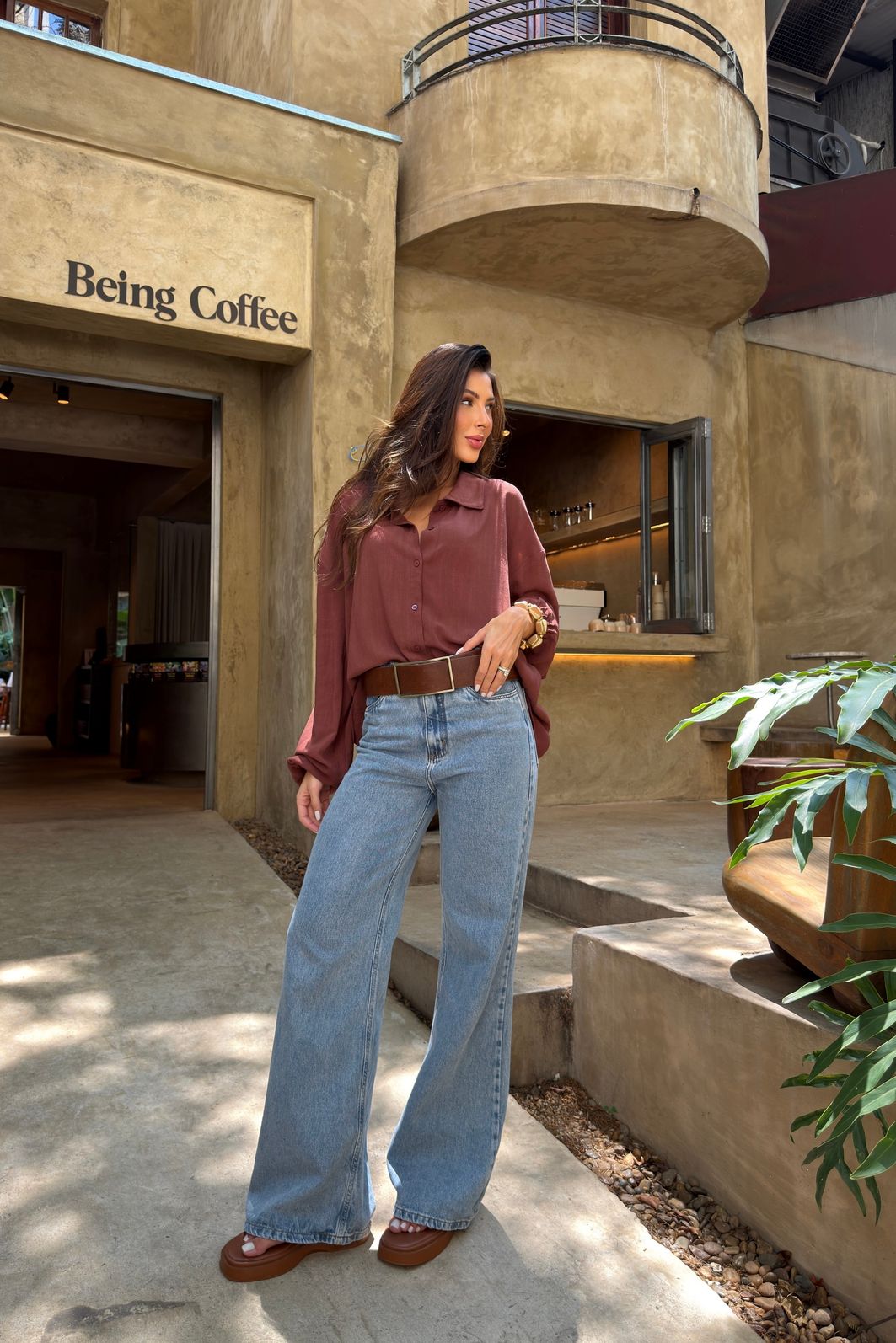 A modelagem é solta, com caimento fluido, ideal para quem quer conforto sem perder a elegância. Funciona tanto para looks de trabalho mais descontraídos quanto para produções casuais ou alinhadas, combinando facilmente com calças de alfaiataria, jeans, pantalonas ou saias. É aquela camisa versátil que resolve o look e acompanha a rotina real.