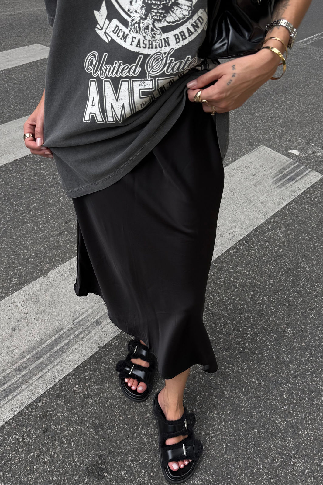 A saia marissa é uma peça chave e estratégica de se ter no guarda roupa, pois além de ser uma peça versátil que dá para montar diversas composições, ela eleva a produção sem esforço e entrega uma imagem polida, feminina e atual, sem perder conforto e estilo. Confeccionada em cetim, ela tem superfície lisa e toque sedoso, com brilho acetinado que valoriza a peça de forma refinada. o corte no viés faz diferença no caimento: a saia acompanha o corpo com fluidez, criando uma linha alongada e elegante. já o cós com elástico embutido garante ajuste confortável na cintura, mantendo a sensação de cintura bem marcada, sem apertar e sem perder a leveza. Uma peça que transita facilmente entre produções elegantes e combinações mais contemporâneas.