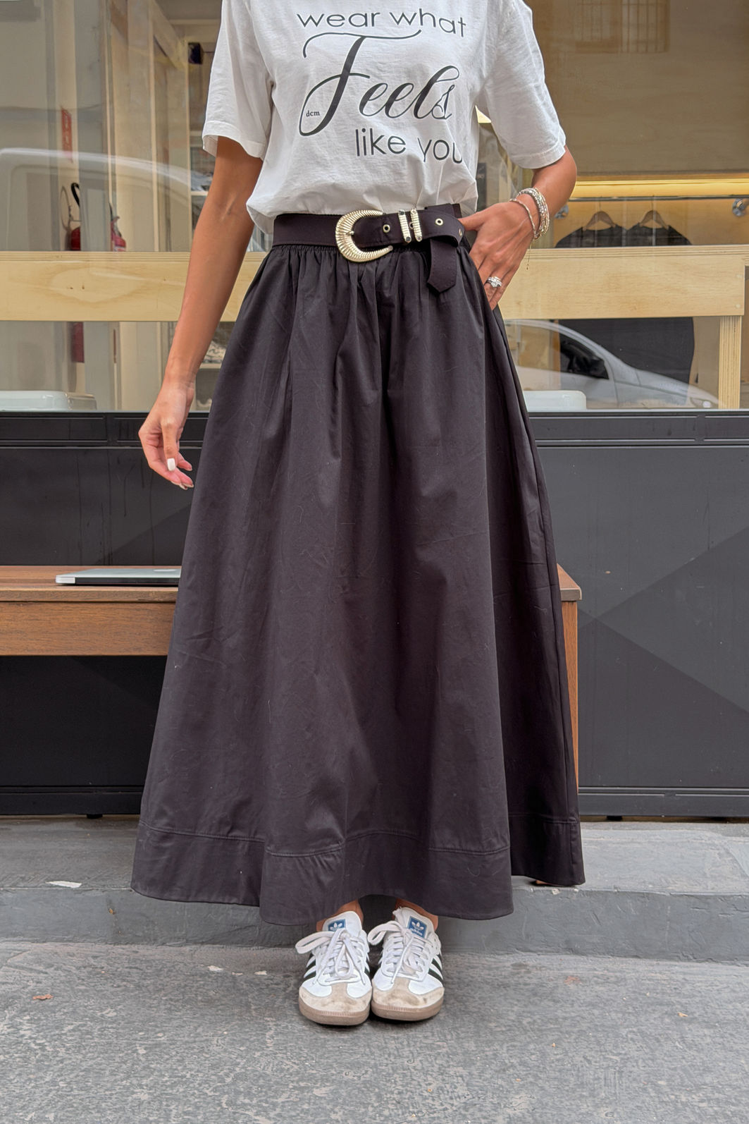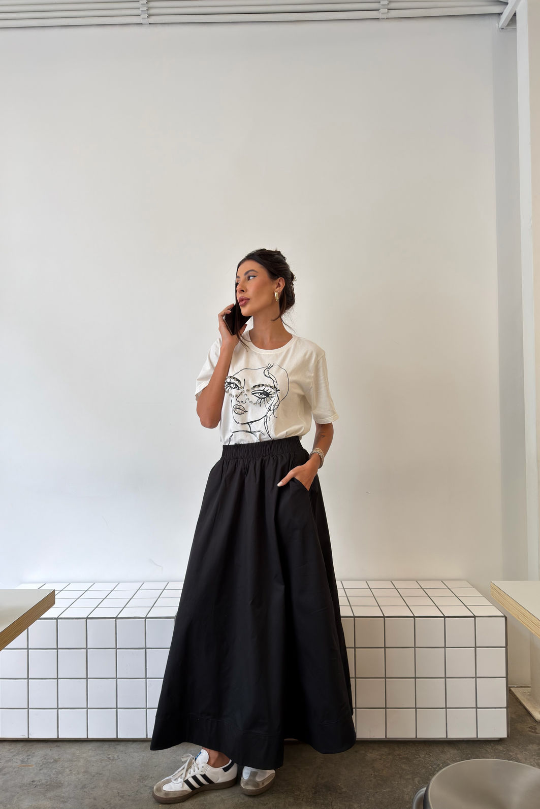 Com elegância natural e um toque atemporal, a saia midi Livia é a escolha perfeita para composições refinadas e versáteis. Confeccionada em tricoline de algodão, possui caimento leve e estrutura impecável, garantindo conforto e estilo em cada detalhe. Os bolsos funcionais e a barra dupla adicionam um charme sutil e moderno à peça. Perfeita para criar looks casuais ou elegantes, ela transita com facilidade do dia a dia ao fim de semana. Uma peça essencial para quem valoriza o minimalismo sofisticado.