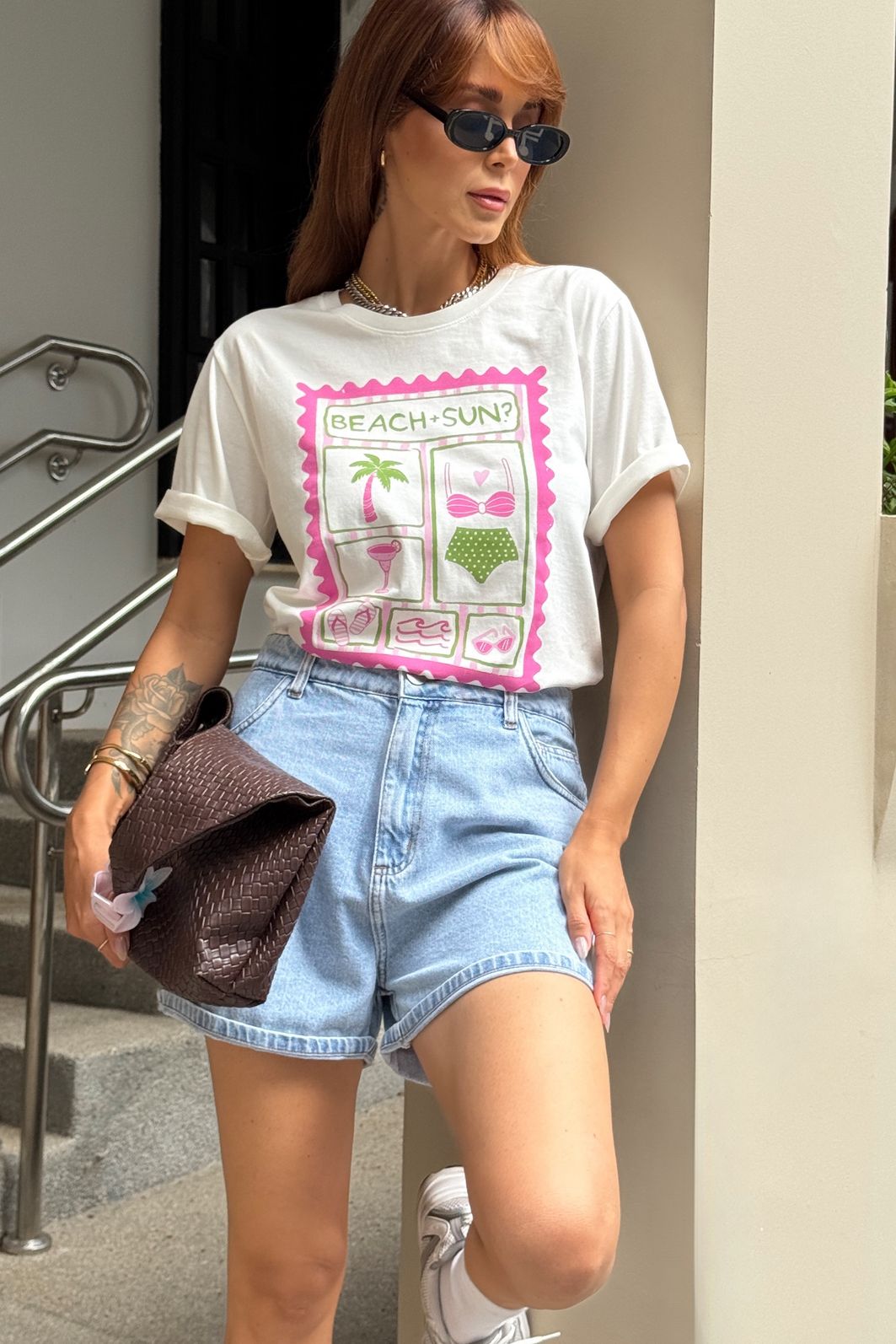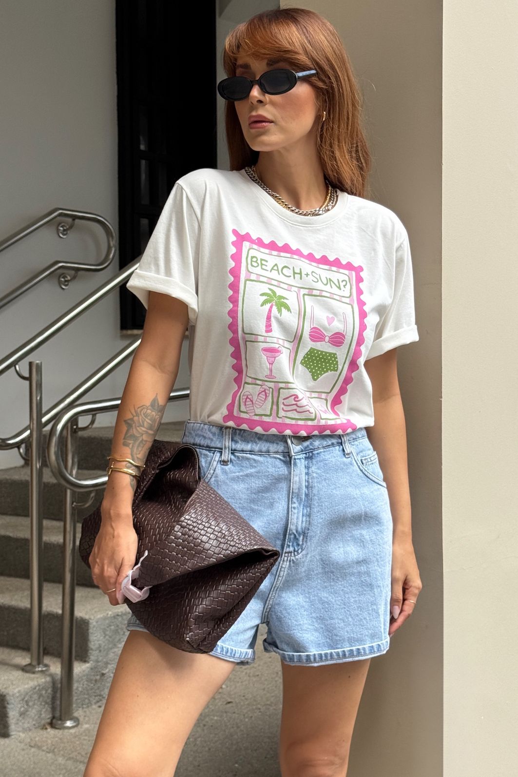 Leve e solar, a estonada t-shirt estonada Beach Sun traduz a atmosfera descontraída dos dias de verão. Uma peça que convida a desacelerar e aproveitar o calor com estilo e naturalidade.Com elementos de verão na estampa, a proposta traz frescor e uma energia leve ao visual, remetendo a momentos ao ar livre e à sensação de liberdade típica da estação. O design equilibrado torna a peça versátil e fácil de combinar. Use com jeans, shorts ou saias para criar produções casuais com um toque fresh, ideais para o dia a dia, viagens ou momentos de descanso.