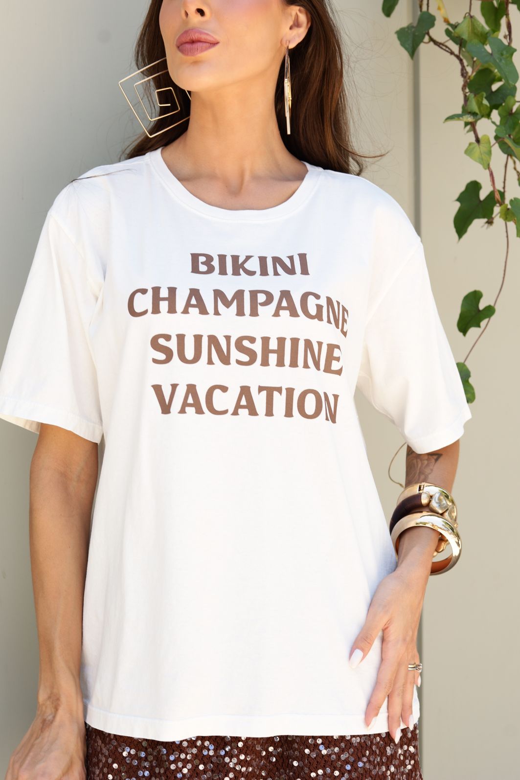 Com um toque leve e cheio de personalidade, a t-shirt Bikini Vacation é perfeita para quem ama unir conforto e estilo em um visual moderno e descontraído. Confeccionada em meia malha 100% algodão, ela oferece toque macio e caimento perfeito, ideal para looks cheios de charme sem esforço. A estampa em lettering transmite a vibe de férias e dias de lazer, trazendo um detalhe sutil e divertido que deixa a peça ainda mais charmosa. Versátil e estilosa, combina facilmente com jeans, shorts ou saias, acrescentando personalidade e leveza às produções do dia a dia.