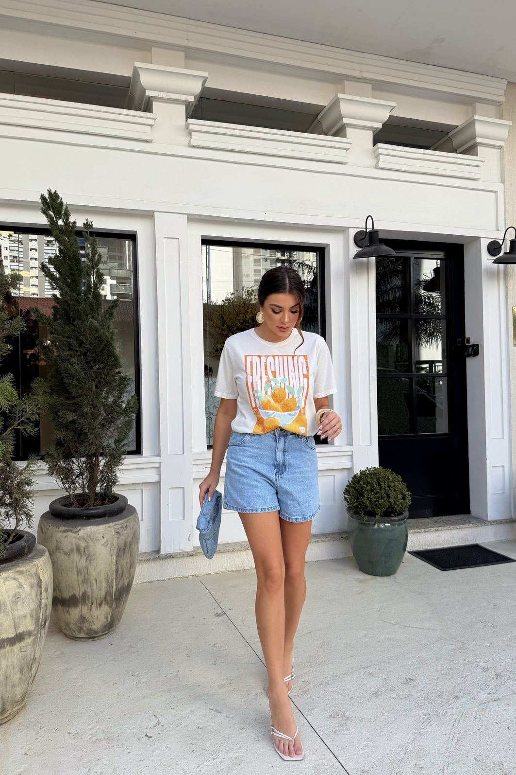 Frescor e estilo em uma só peça! A t-shirt estonada Freshing é perfeita para quem busca conforto aliado a um toque de modernidade. Confeccionada em meia malha 100% algodão com lavagem estonada, ela possui um toque macio, caimento leve e visual contemporâneo. A estampa exclusiva com elementos cítricos traz um ar natural e sofisticado adicionando cor e personalidade na medida certa. Versátil e estilosa, é ideal para compor produções casuais e cheias de charme, do jeans básico às combinações mais fashionistas.