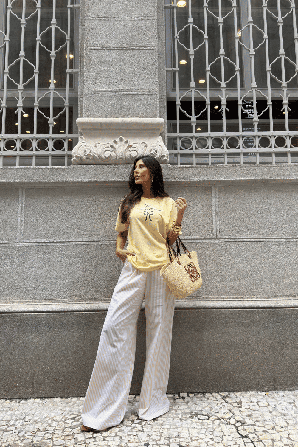 a modelagem é reta, com caimento confortável, ideal para quem quer estilo com significado no dia a dia. funciona tanto para produções casuais com jeans quanto para combinações de verão com short ou saia. combina facilmente com tons claros, sandálias ou tênis. é aquela peça que entra no guarda-roupa e realmente é usada.