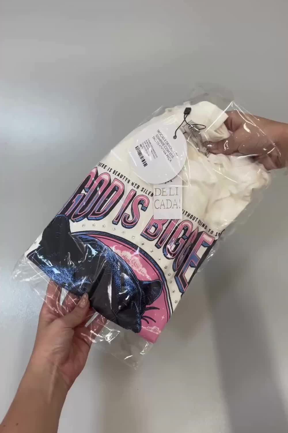 se você procura t-shirt off white estampada, essa é a peça certa. a t-shirt estonada god is bigger com strass off white da dolce-me é confeccionada em malha pt pré-encolhida 100% algodão, com estampa localizada frontal em silk screen aplicada com strass, o que garante brilho sutil, toque macio e durabilidade sem desbotar com facilidade. o detalhe em strass traz ponto de luz sofisticado, deixando a peça ainda mais especial.