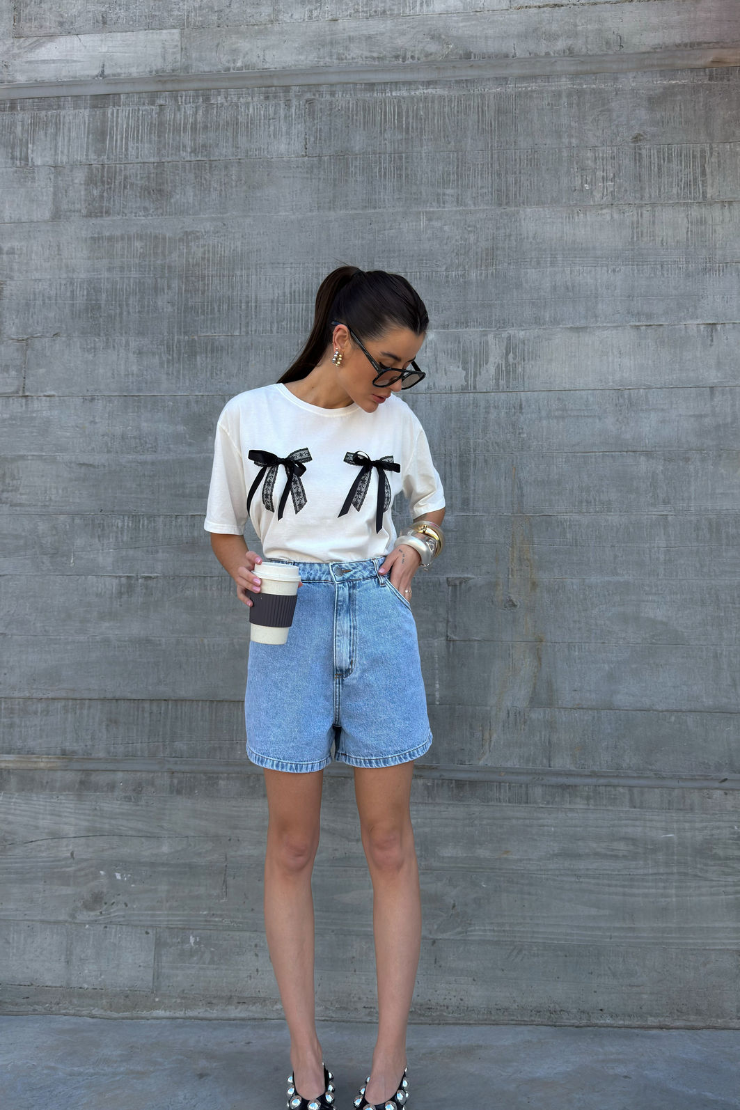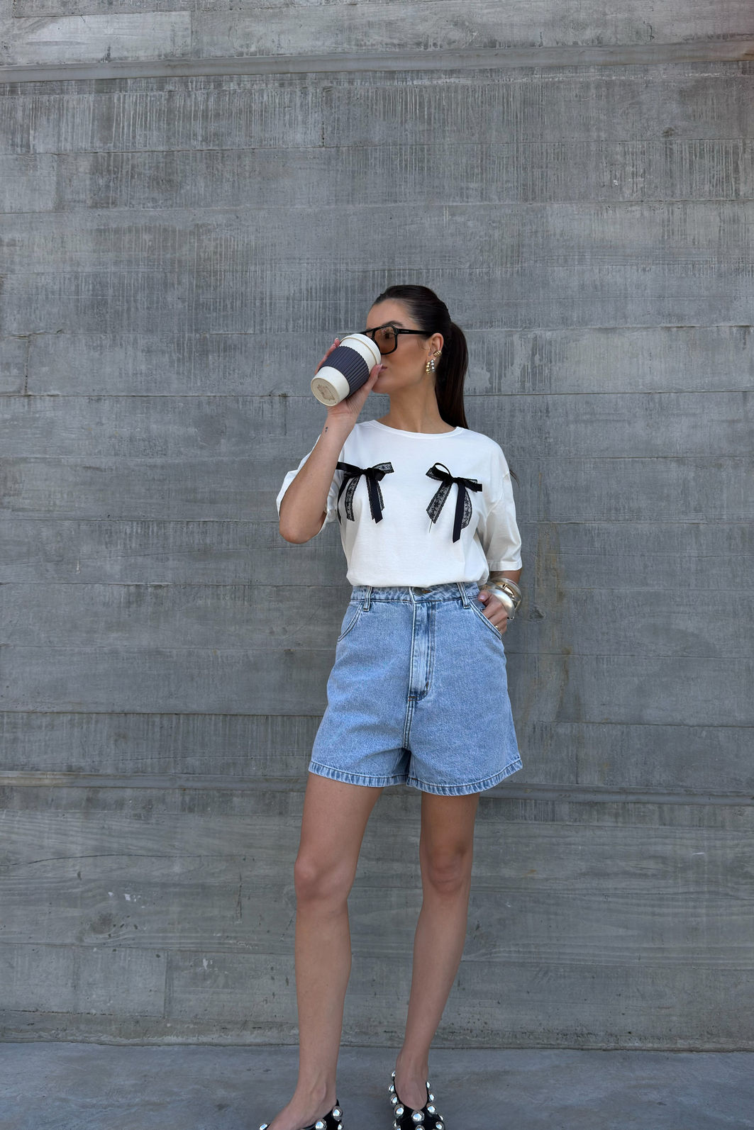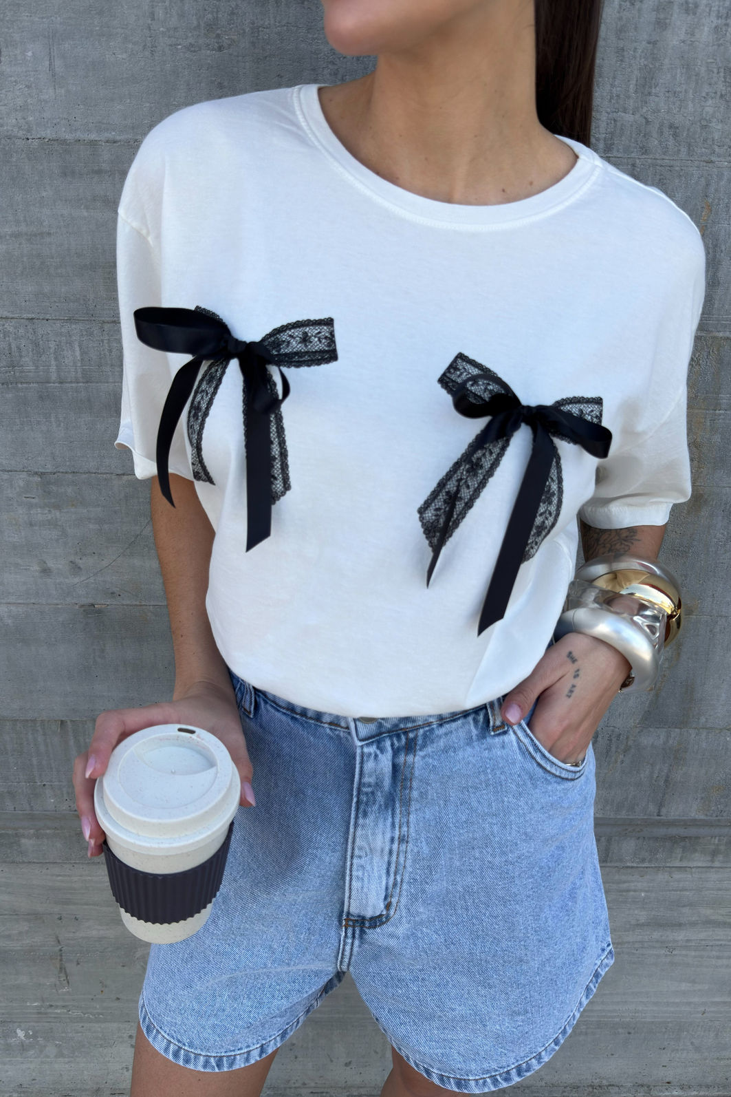 T-SHIRT ESTONADA LAÇOS HANDMADE (COM APLICAÇÃO) OFF WHITE