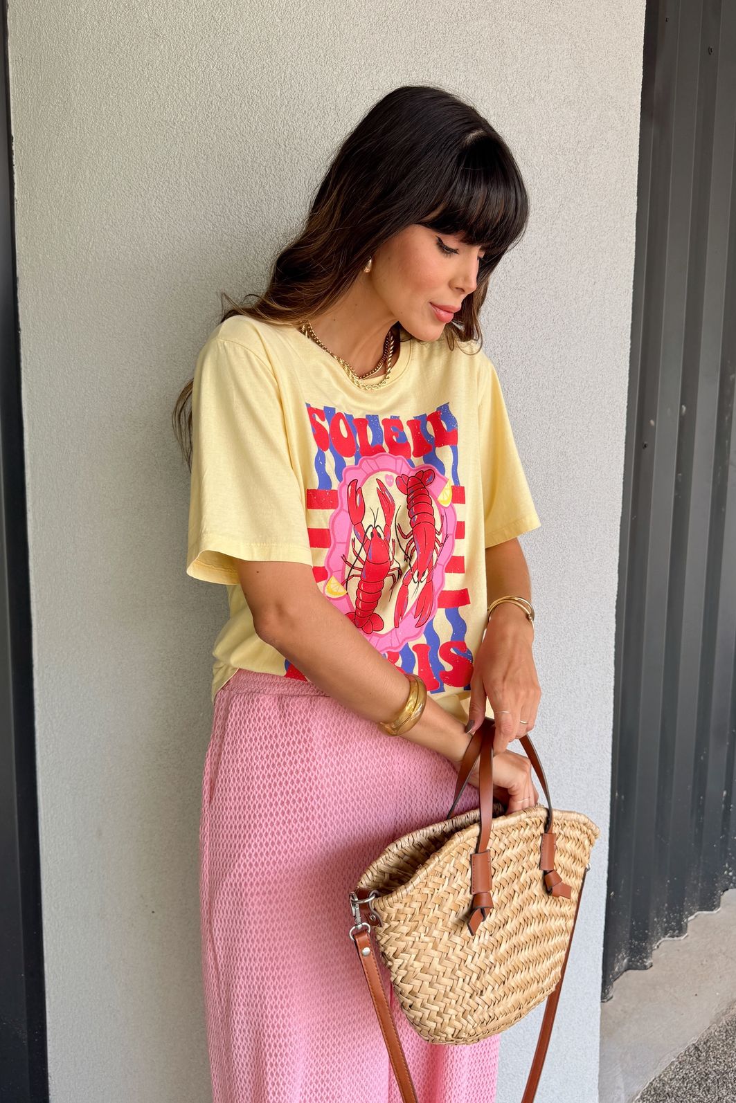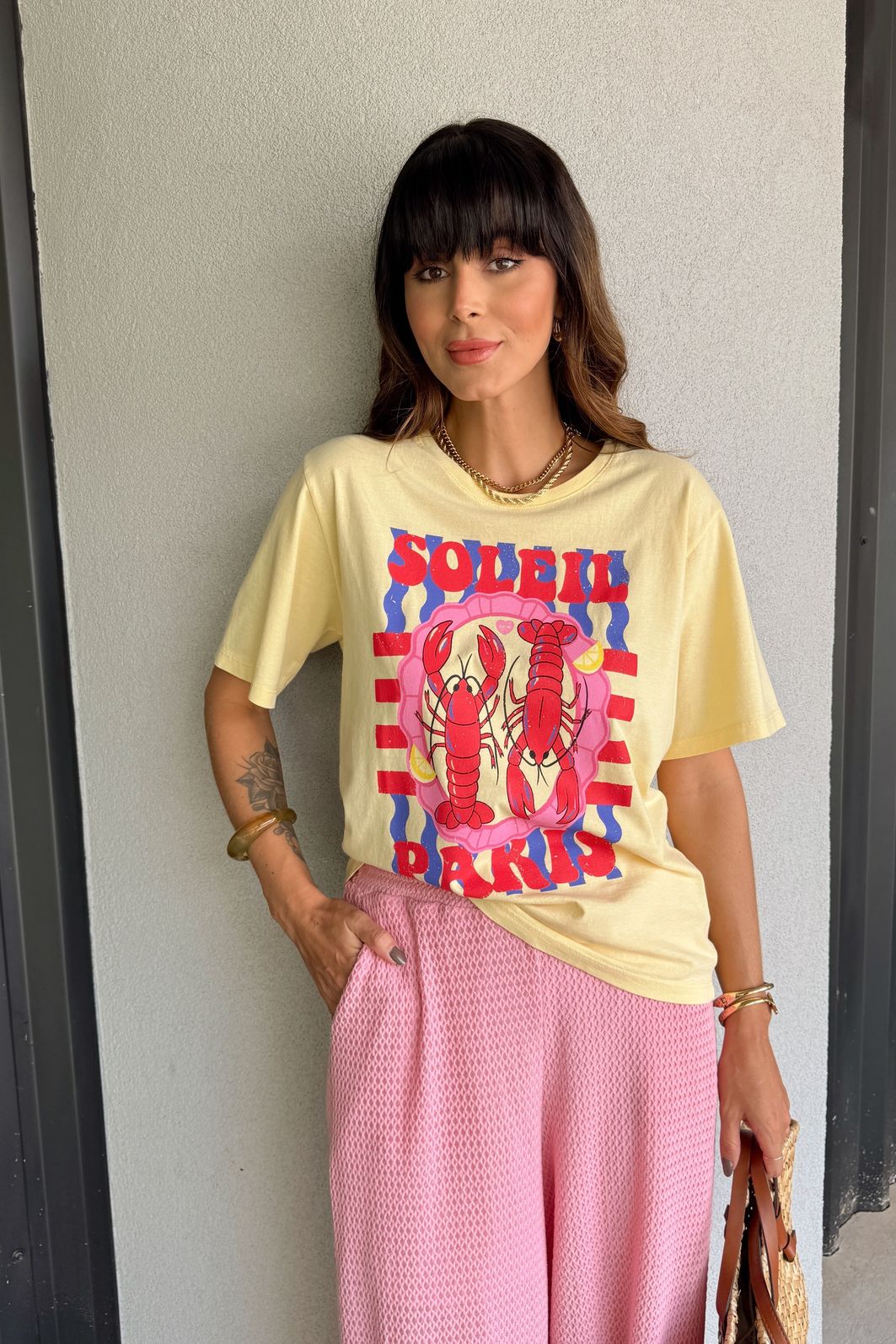 Com vibe solar e descontraída, a t-shirt Lagostas Soleil é a escolha perfeita para quem ama looks leves e cheios de personalidade. Confeccionada em meia malha 100% algodão, ela garante conforto, toque macio e caimento soltinho. A estampa de lagostas adiciona um toque divertido e sofisticado ao visual, remetendo ao clima litorâneo e aos dias ensolarados. Combine com jeans, shorts ou saias para composições frescas e estilosas. Uma peça que traz o verão em cada detalhe.