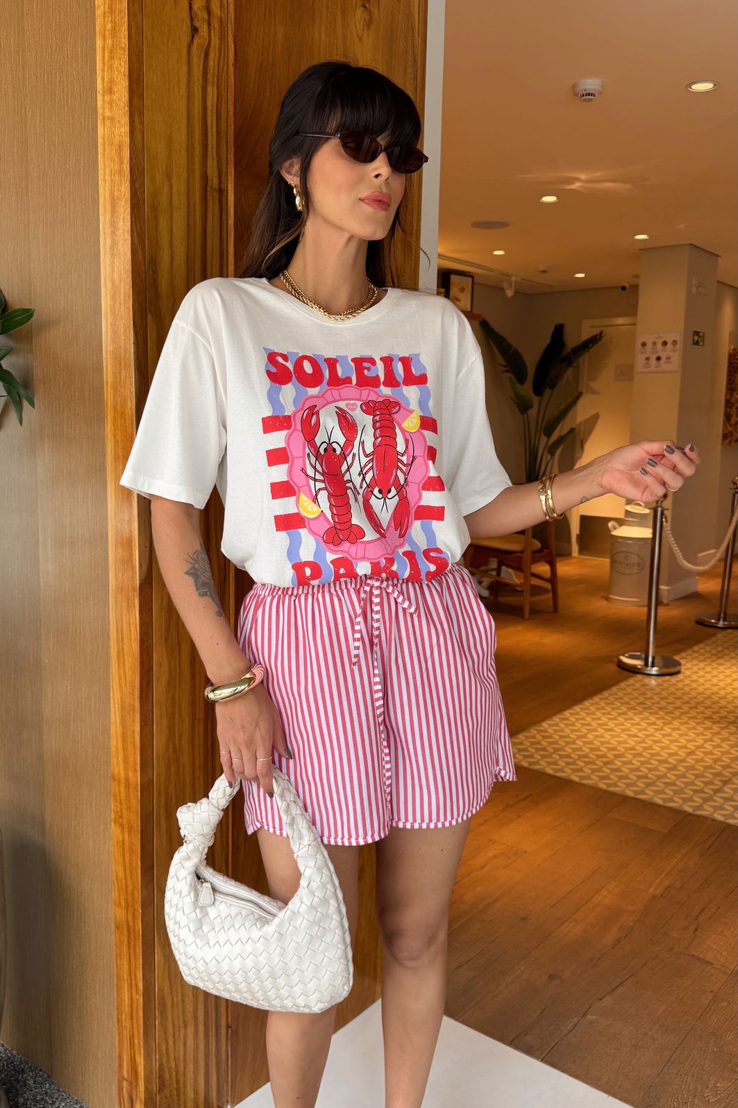 Com vibe solar e descontraída, a t-shirt Lagostas Soleil é a escolha perfeita para quem ama looks leves e cheios de personalidade. Confeccionada em meia malha 100% algodão, ela garante conforto, toque macio e caimento soltinho. A estampa de lagostas adiciona um toque divertido e sofisticado ao visual, remetendo ao clima litorâneo e aos dias ensolarados. Combine com jeans, shorts ou saias para composições frescas e estilosas. Uma peça que traz o verão em cada detalhe.