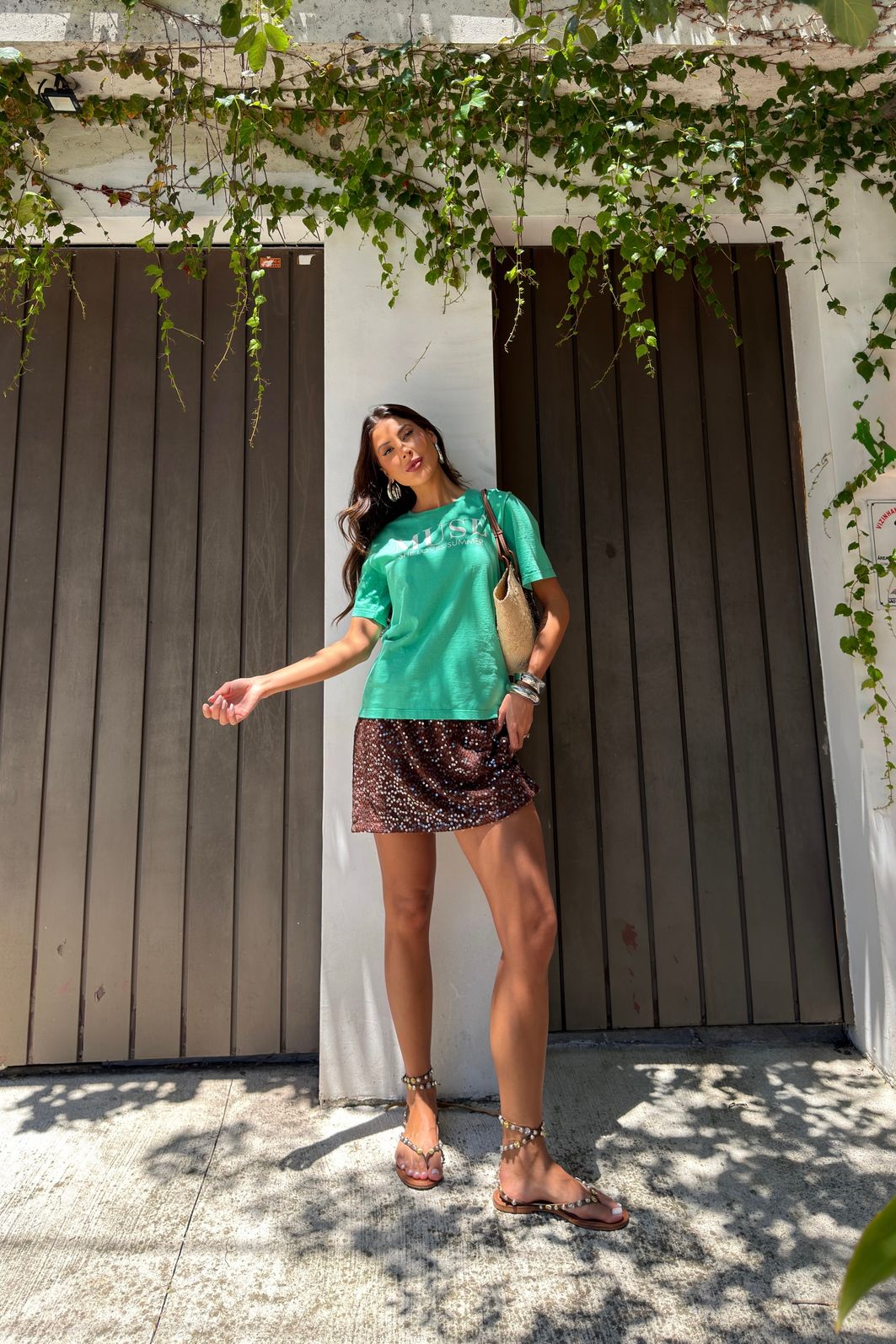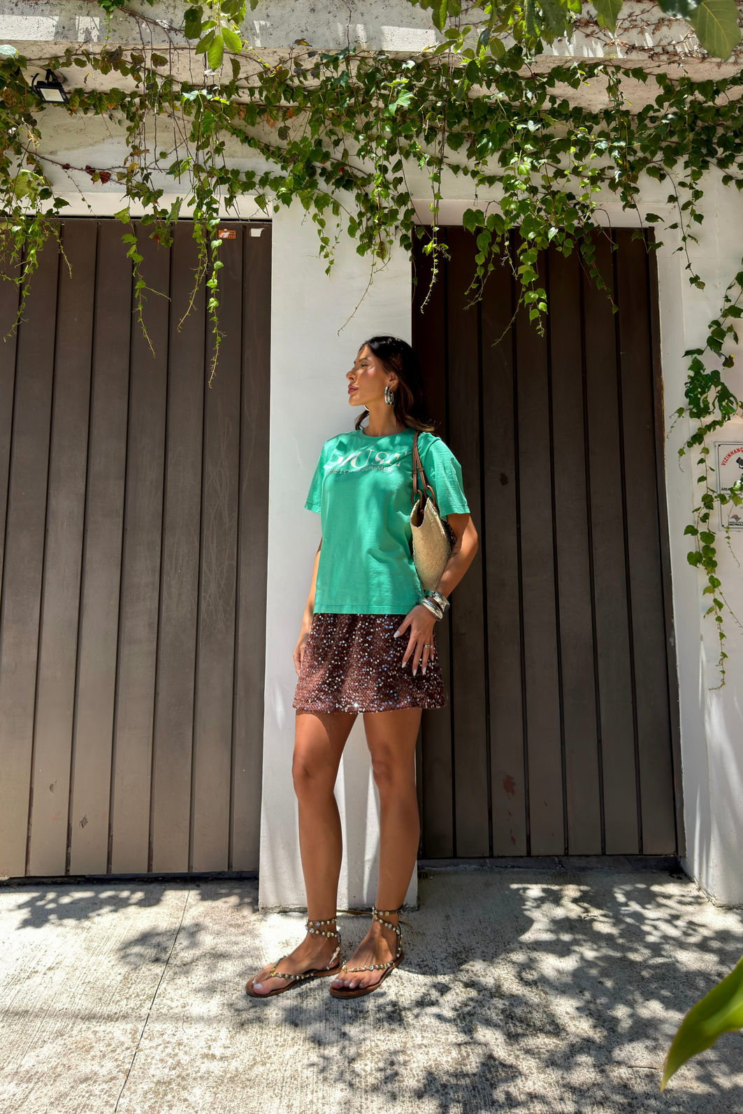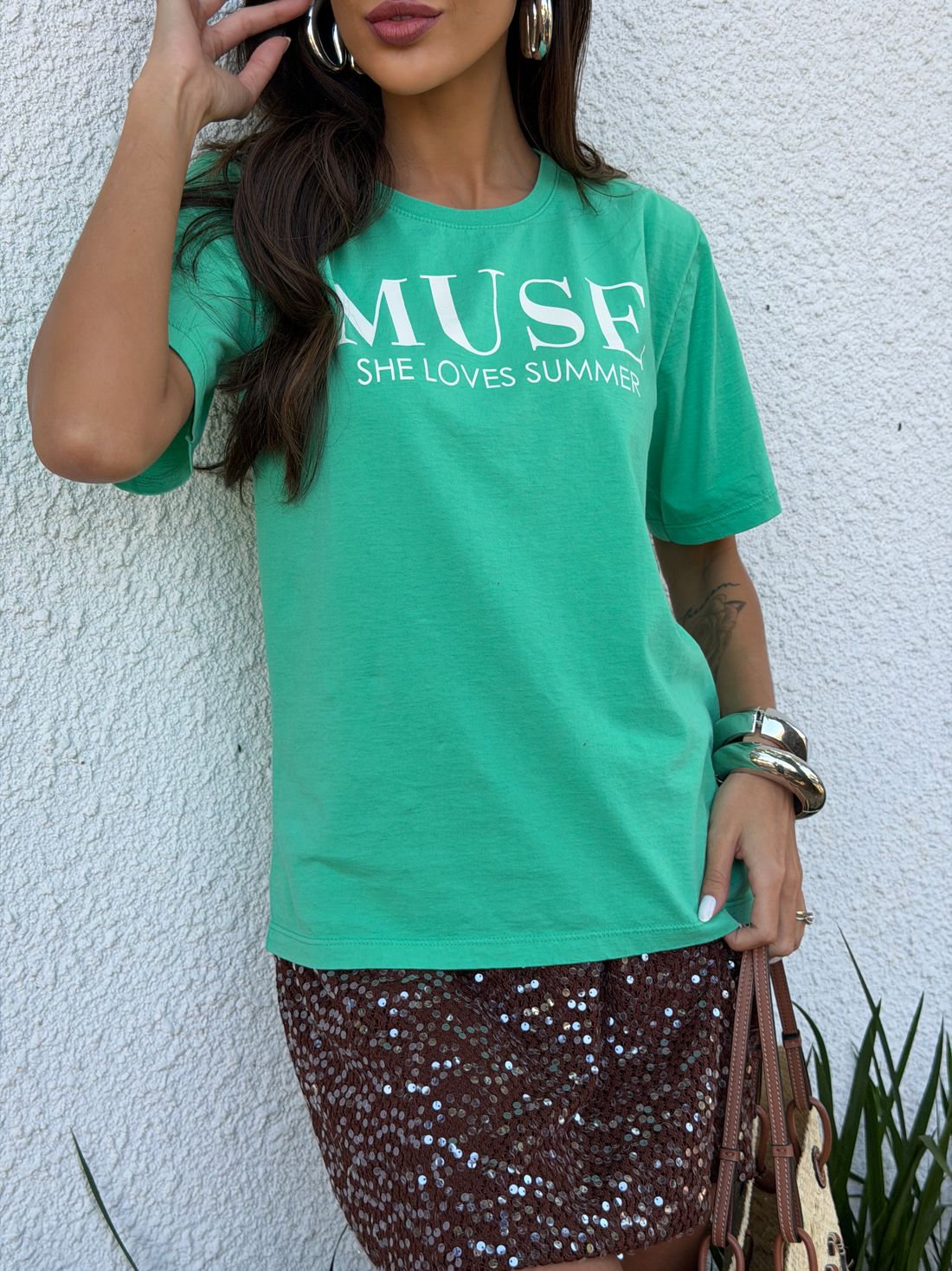 Com um toque leve e cheio de personalidade, a t-shirt Muse é perfeita para quem ama unir conforto e estilo em um visual moderno e descontraído. Confeccionada em meia malha 100% algodão, ela oferece toque macio e caimento perfeito, ideal para looks cheios de charme sem esforço. A estampa em lettering transmite um mood leve e feminino, adicionando um detalhe sutil que valoriza a autenticidade da peça. Versátil e estilosa, combina facilmente com jeans, shorts ou saias, trazendo personalidade e frescor às produções do dia a dia.