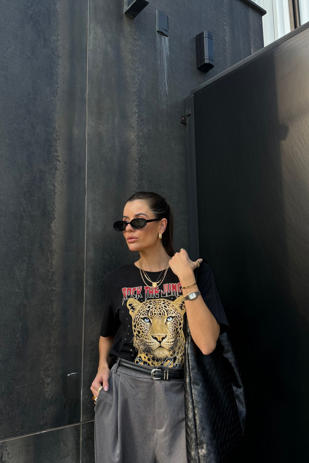 AdicionarA t-shirt estonada rock the jungle preta da dolce-me é confeccionada em malha pt pré-encolhida 100% algodão, com estampa localizada frontal em silk screen, o que garante mais durabilidade e definição ao desenho. O acabamento estonado traz um visual moderno e levemente vintage, deixando a peça ainda mais especial. a modelagem é clássica, com caimento confortável, ideal para quem quer praticidade e estilo no dia a dia. Funciona tanto para produções casuais quanto para composições mais elaboradas, combinando facilmente com jeans, alfaiataria ou shorts. É aquela peça que entra no guarda-roupa e realmente é usada.