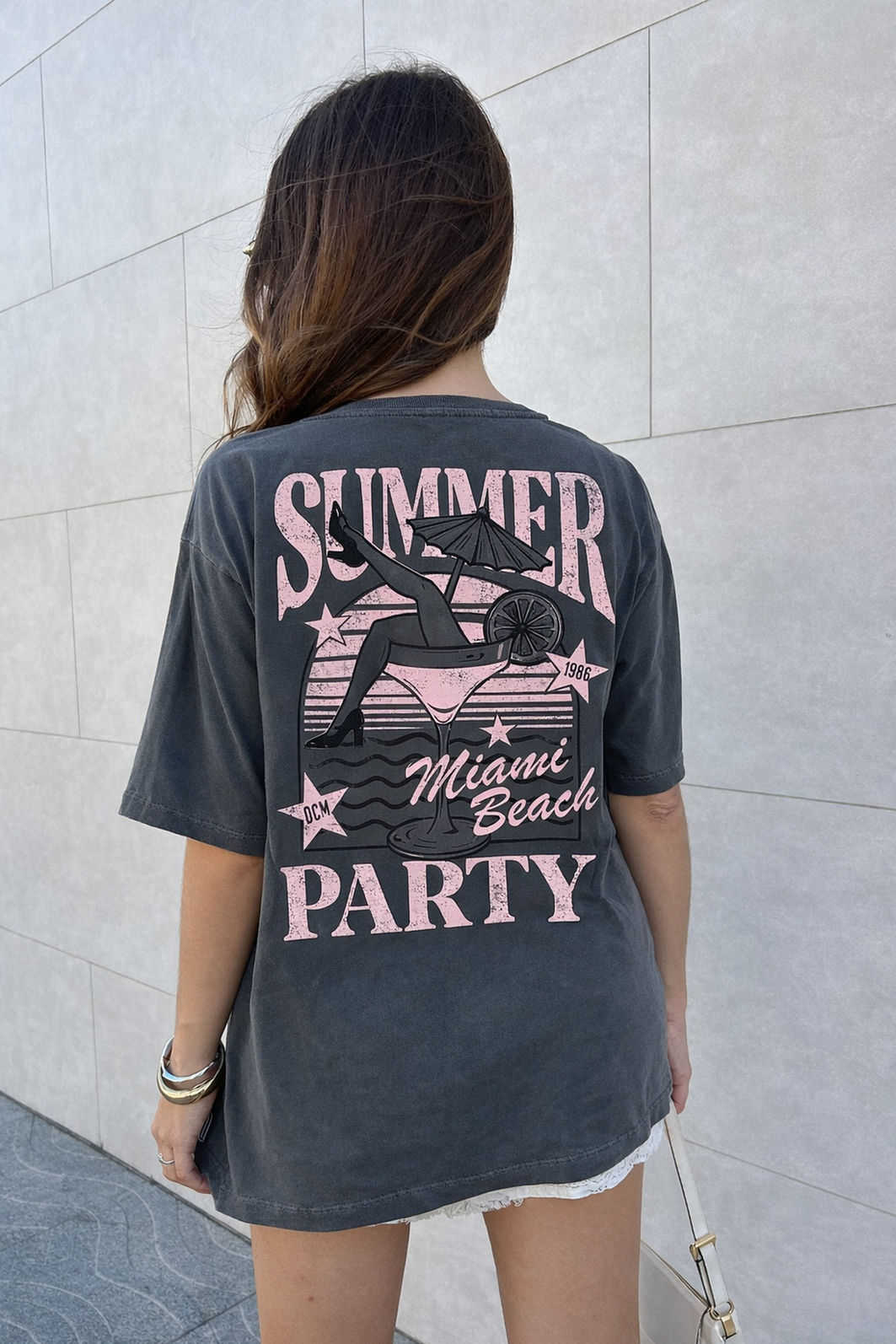 Porque é confortável, moderna e cheia de atitude. A T-shirt Summer Party une algodão de qualidade, modelagem clássica e estampa em silk screen nas costas, que não é transfer nem sublimação, garantindo um visual mais premium. É o tipo de peça que traz informação de moda sem esforço e se destaca nos detalhes.