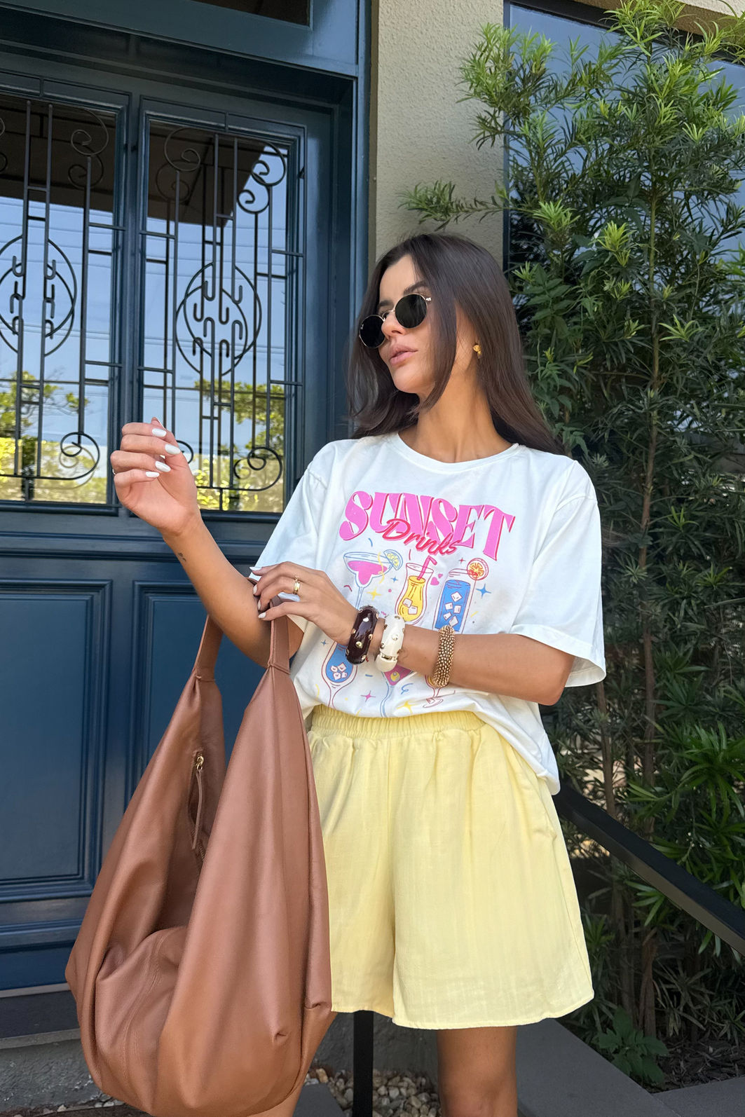 Com um toque divertido e cheio de personalidade, a t-shirt Sunset Drinks é perfeita para quem ama unir conforto e estilo em um visual moderno e descontraído. Confeccionada em meia malha 100% algodão, ela oferece toque macio e caimento perfeito, ideal para looks cheios de charme sem esforço. A estampa com drinks em cores vibrantes traz um mood alegre e animado, inspirando momentos de descontração e celebração. Versátil e estilosa, combina facilmente com jeans, shorts ou saias, adicionando uma dose extra de personalidade às produções do dia a dia.
