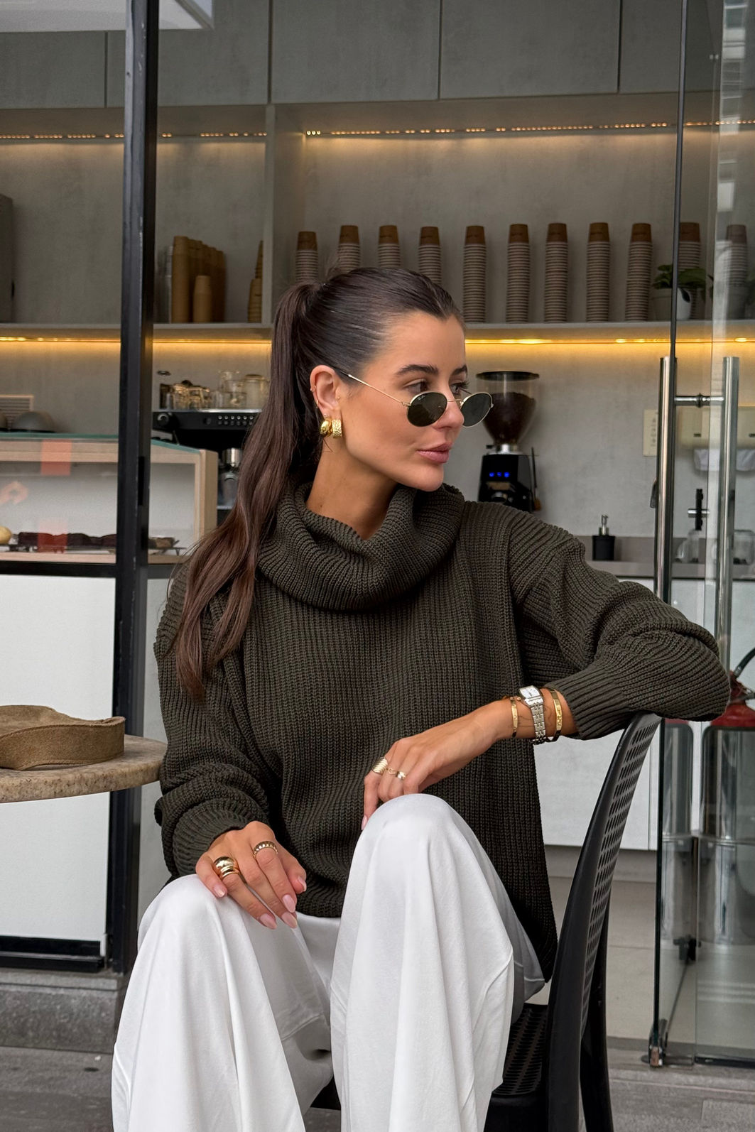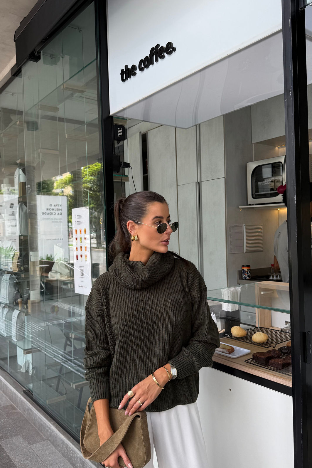 AdicionarO tricot lollipop verde militar é a peça coringa que sustenta um look com estilo e conforto. A cor deixa o tricot super versátil, enquanto a textura entrega aquele acabamento que a gente ama. A gola alta traz charme e cria um enquadramento elegante para o rosto, além de manter a sensação quentinha. Com modelagem ampla, ele cai solto no corpo e na altura do quadril, perfeito para composições modernas, estilosas e sofisticadas, sem abrir mão da praticidade e do conforto.