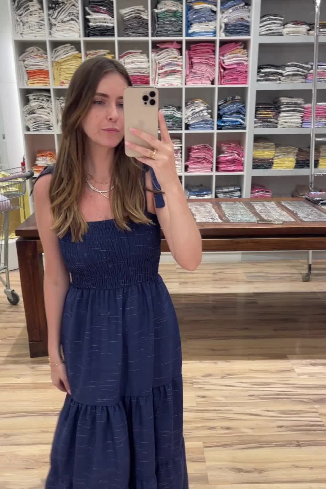 | Detalhes | Vestido com comprimento longo em viscose texturizada, alças de amarrar, decote reto, busto total em lastex, recortes com leve franzido e acabamento em bainha. |