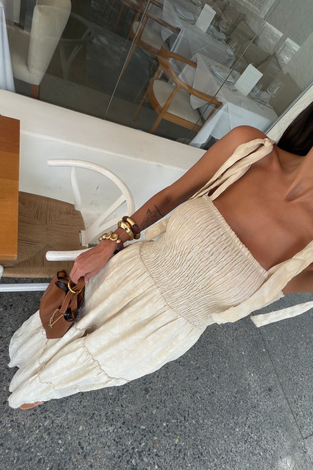 Com charme leve e toque sofisticado, o vestido Amalfi é a escolha ideal para quem ama um visual naturalmente elegante. Confeccionado em viscose jacquard, ele traz caimento fluido e movimento delicado a cada passo. O modelo longo conta com alças ajustáveis por amarração e decote reto, valorizando o colo de forma sutil e feminina. O busto em lastex garante conforto e ajuste perfeito ao corpo, enquanto os babados na saia adicionam um ar romântico e encantador. Uma peça versátil e cheia de leveza, perfeita para dias ensolarados e ocasiões especiais.