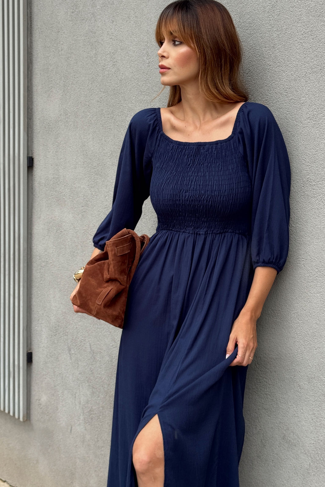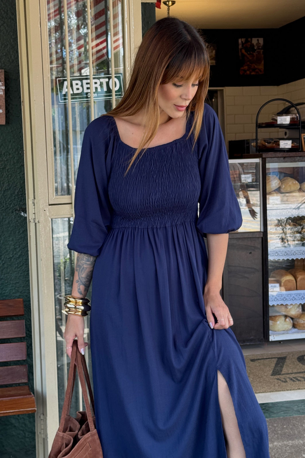 AdicionarConfeccionado em tecido de viscolinho, o vestido Bárbara é aquela peça super leve e fluída. Ele possui lastex total no busto que auxilia na vestibilidade porque estica bastante, além de encaixar perfeitamente no busto, dando sustentação, segurança e conforto. Pode ser usado com decote quadrado mantendo as mangas para cima, ou ainda como ciganinha, deixando as mangas ombro a ombro. O comprimento é midi e possui uma fenda na lateral. Uma peça cheia de personalidade, perfeito para quem ama praticidade sem abrir mão do conforto e de estar estilosa.