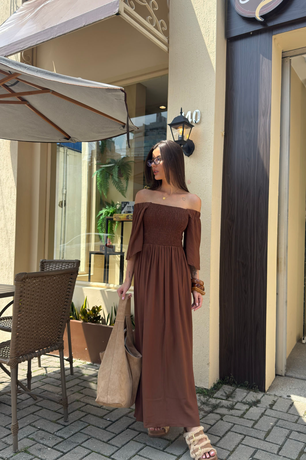 O vestido midi dreams foi pensado para quem quer um vestido que marque a cintura de um jeito confortável e deixe o corpo leve, sem ficar justo e marcado demais. O lastex no busto cria aquele encaixe bonito que acompanha você o dia inteiro, e a saia mais solta traz movimento e uma feminilidade tranquila, daquela básica e essencial de se ter no guarda roupa. É uma peça que entrega presença com delicadeza e fica pronta para acompanhar do cotidiano a ocasiões mais arrumadas.